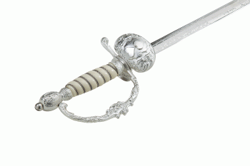 Der Degen hat einen elfenbeinfarbigen Griff mit versilberten Draht um dem Degen einen luxuriösen und einzigartigen Look zu verleihen.