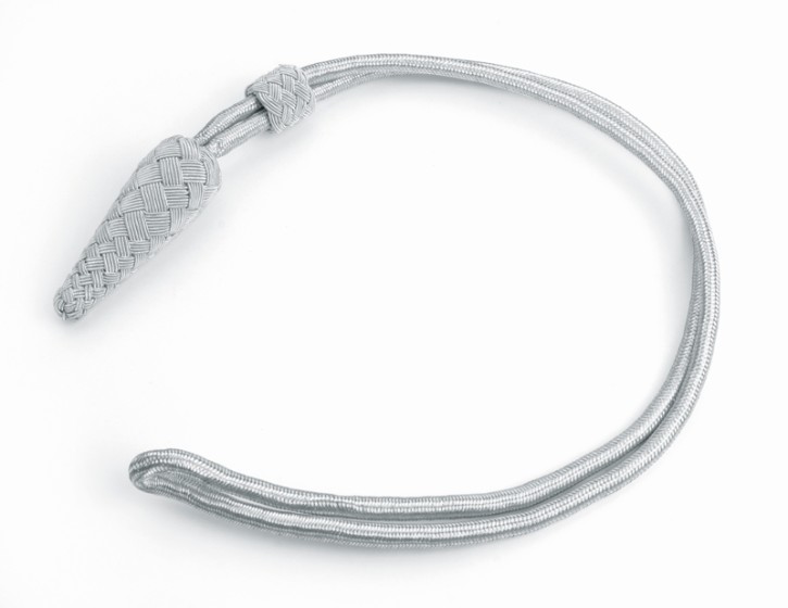 - Der Griffkörper ist bezogen mit echter Fischhaut, schwarz lackiert und mit versilberten Drähten umwickelt.