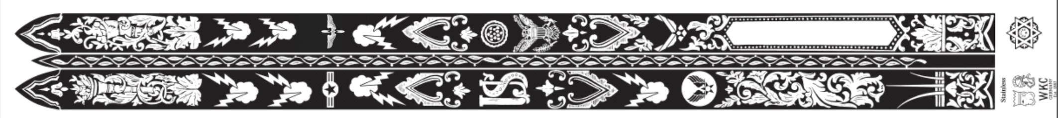 - Ätzung: feine Damaszierung beider Klingenseiten, so tief dass man sie mit dem Finger fühlen kann. Historische Originalätzung mit Adler.