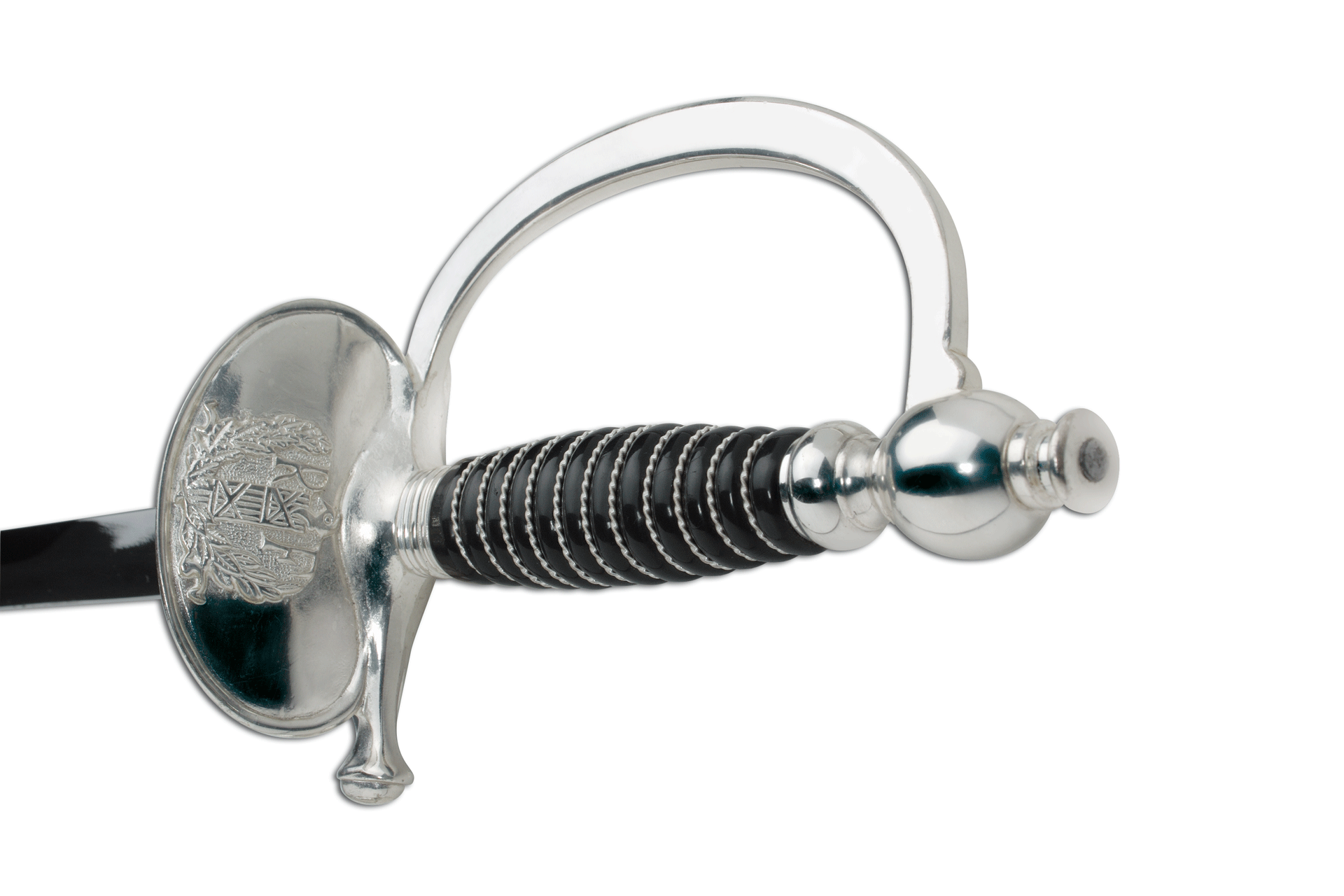 Der Degen hat gerade, hochglanzpolierte Klinge, der Griff des Polizeidegens ist aus hochwertigem Holz gefertigt. Er ist ergonomisch geformt, um eine bequeme und sichere Handhabung zu gewährleisten. Am Ende des Griffs befindet sich oft eine Handschutzkappe, um die Hand des Polizisten vor Verletzungen zu schützen.