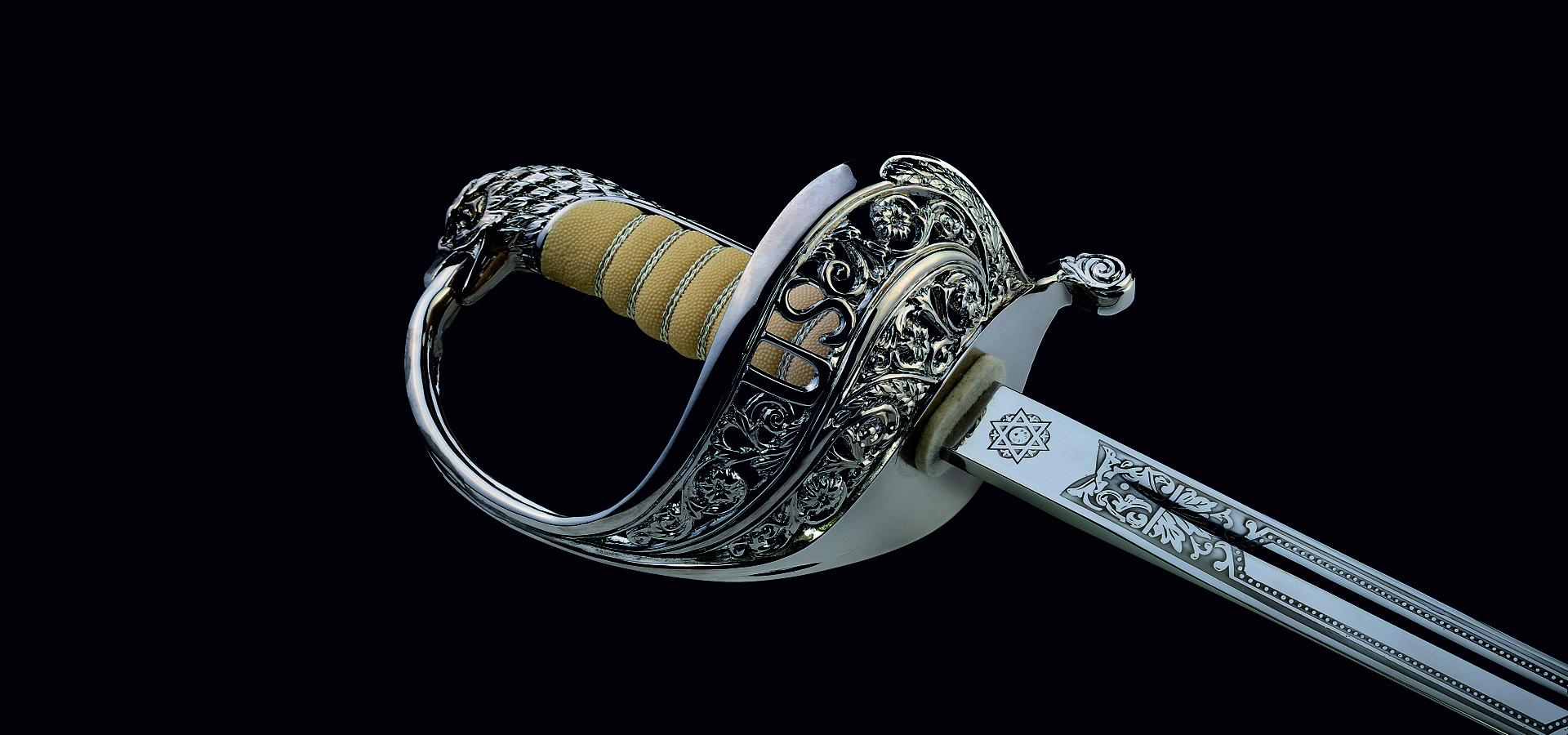 Gravure : damas fin des deux côtés de la lame, si profond que vous pouvez le sentir avec votre doigt. Gravure originale historique avec aigle.