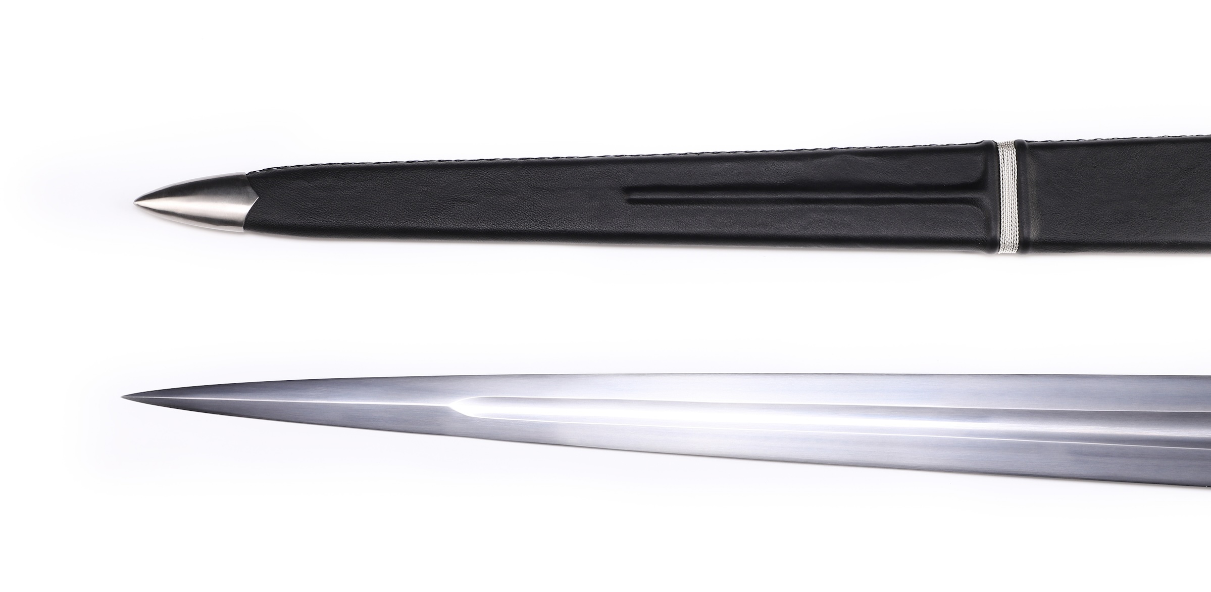 "Schattenstahl" – épée fonctionnelle à une main avec lame en acier à ressort et fourreau en cuir cousu main