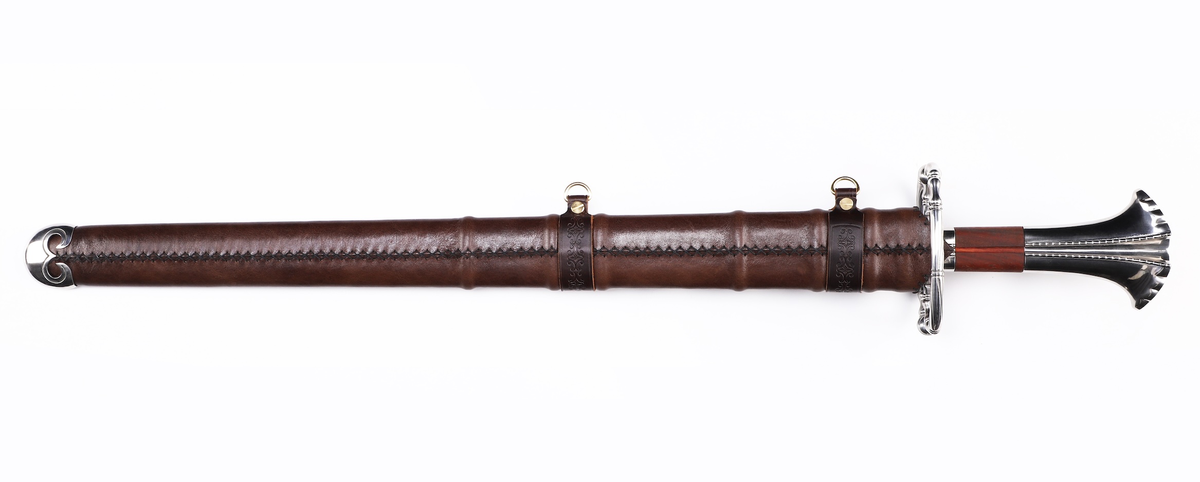 "Silberstich" – Épée fonctionnelle à une main avec lame en acier à ressort et fourreau en cuir cousu main, inspirée de modèles historiques